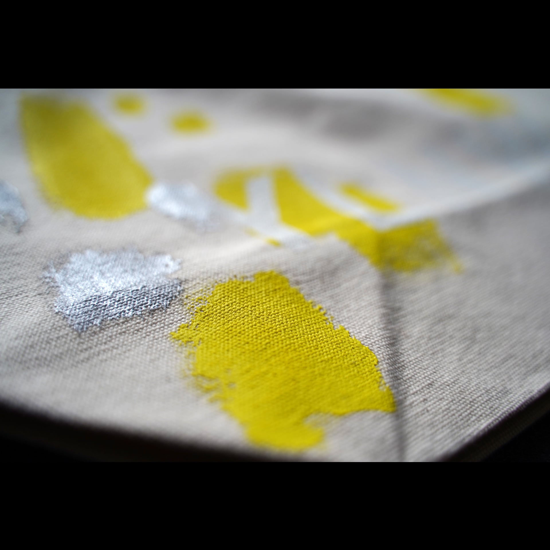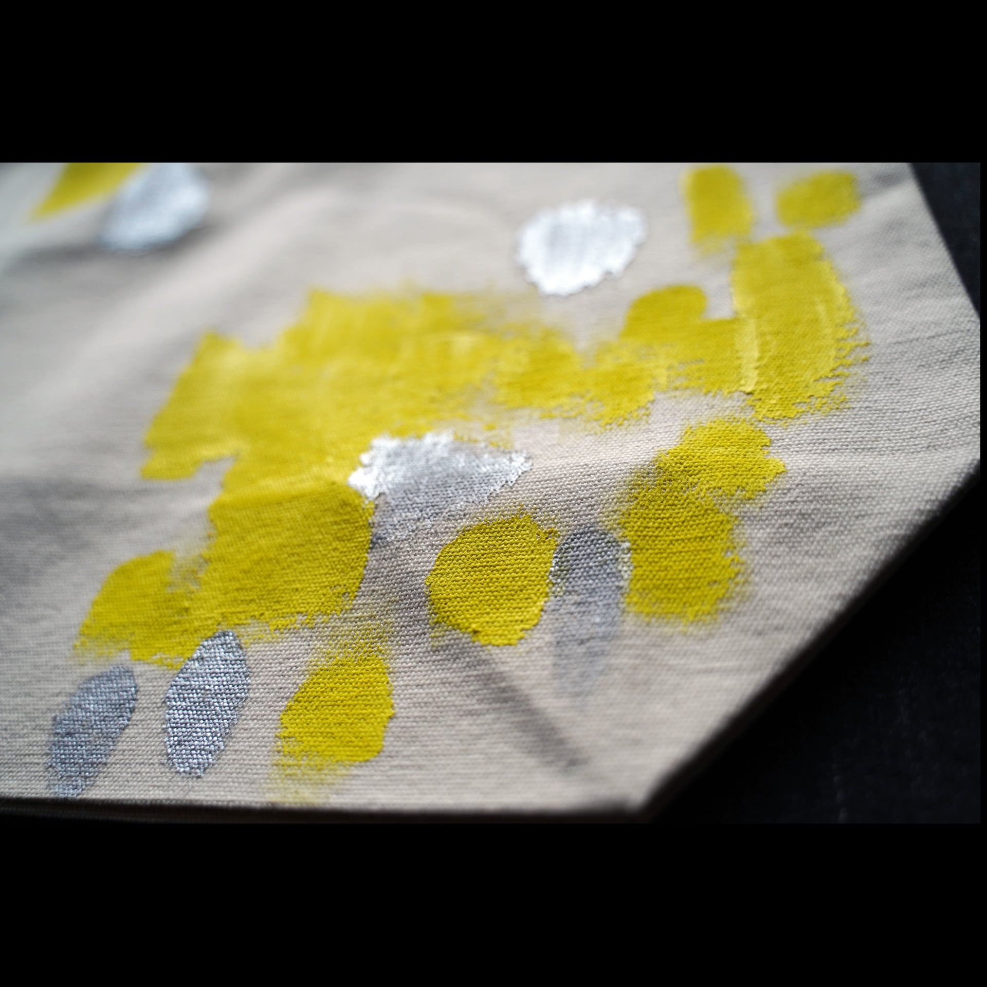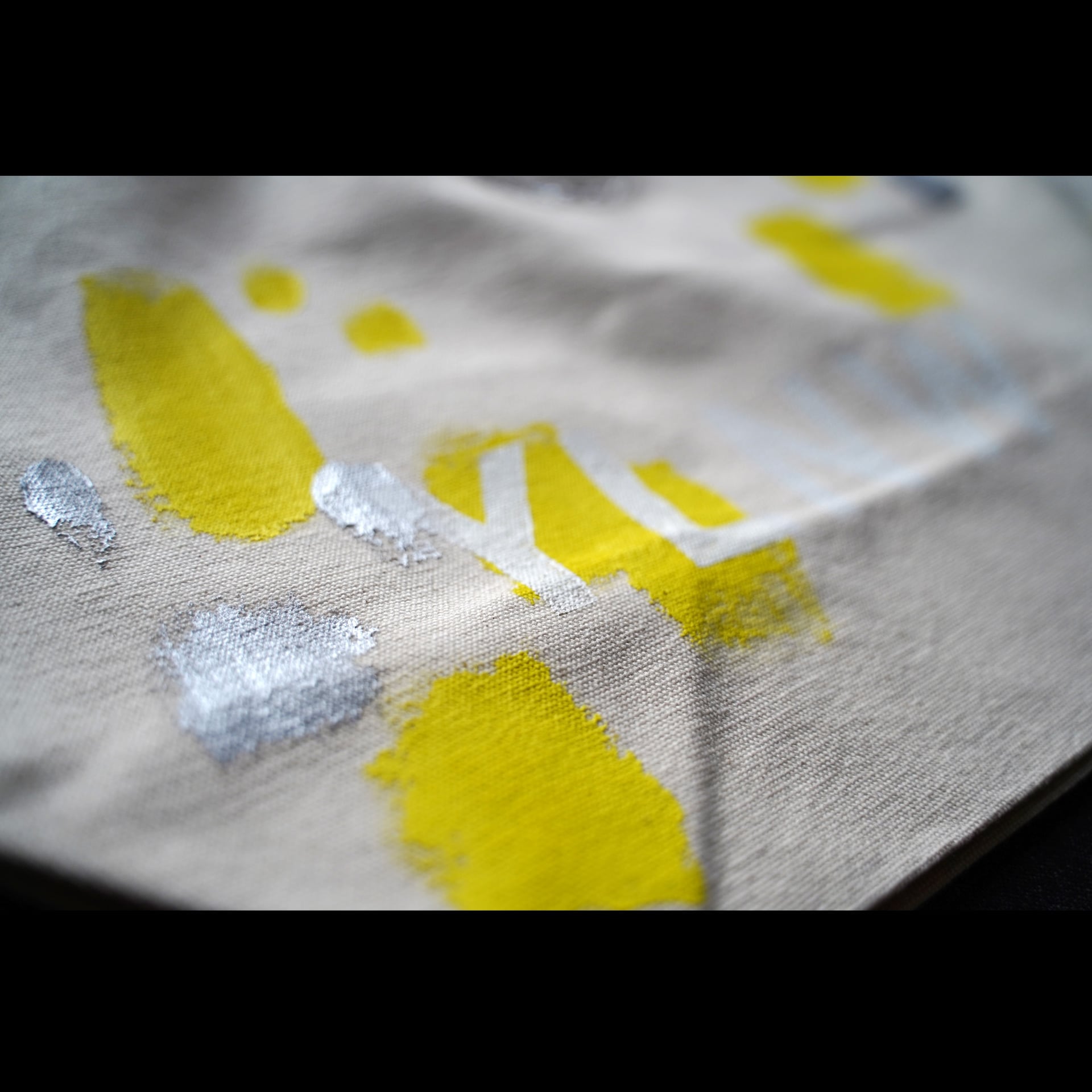 icchieの手描ペイントビッグトートバッグ!(イエロー、シルバー)